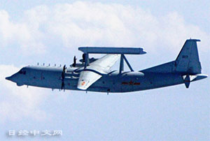 | 在對馬海峽上空飛行的中國軍隊Y8預警機(日本防衛省統合幕僚監部提供) |