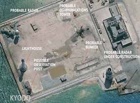 | 1月24日華陽礁的北部。左上側被認為是雷達設施(CSIS提供圖片、kyodo) |