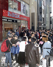 日本百貨商場大丸的旗艦店心齋橋店2015財年(截至2016年2月)的免稅品銷售額較上財年提高了2倍以上。電器店laox在2月在該地開設了該公司最大規模的免稅店等,為應對訪日遊客增加,沒有停止投資。