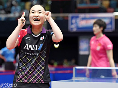 | 伊藤美誠在戰勝丁寧後難掩驚訝的表情 |