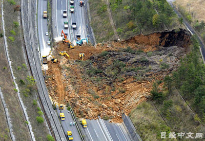 | 遭到土石流破壞的大分車道(4月16日,大分縣由布市,KYODO) |