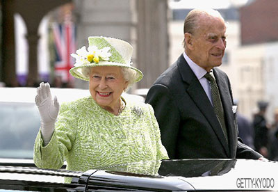| 迎來90大壽的伊麗莎白二世(左)和菲利普親王(右)在敞篷車上向民眾揮手致意(4月21日,英國,getty-kyodo) |