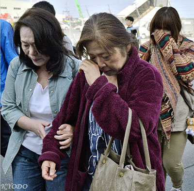 | 和家人重逢落淚的女性(4月19日,日本熊本,KYODO) |