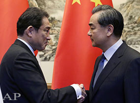 | 中國外長王毅與日本外相岸田文雄(AP) |