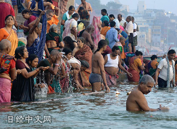 | 清晨在恒河水中沐浴凈身的印度教信眾(印度 瓦拉納西) |