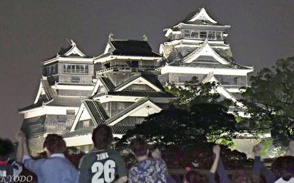 | 熊本城時隔1個半月重新亮起燈光(6月1日,KYODO) |