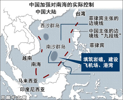 認為中國在南海的行為違法的菲律賓向國際法庭提起仲裁,預計荷蘭海牙的國際法庭將於近期作出裁決。圍繞中國與日美等國對立的南海,國際法庭將首次作出仲裁。中國外交部6月8日發表聲明稱「中方敦促菲律賓立刻停止推進仲裁程式的錯誤舉動,回到通過雙邊談判解決中菲在南海的有關爭議的正確道路上來」。擔心國際法庭將作出對本國不利的裁決,警惕菲律賓和日美強化對中國在南海推進軍事基地化的批評。