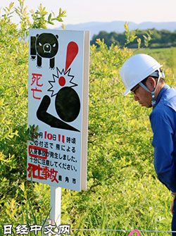 | 在熊被射殺的現場附近立起的警示牌 |