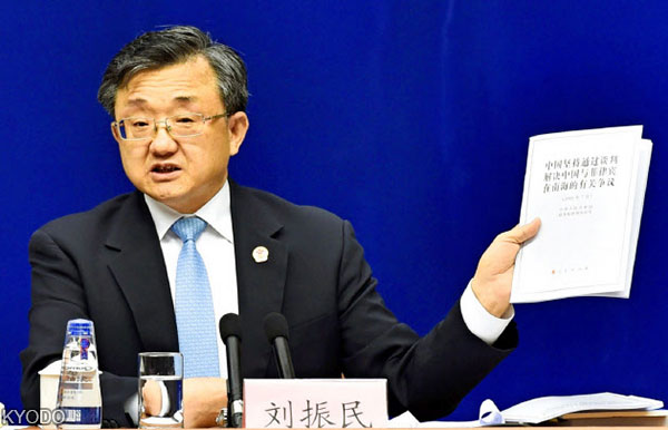 | 中國外交部副部長劉振民7月13日在記者會上(kyodo) |