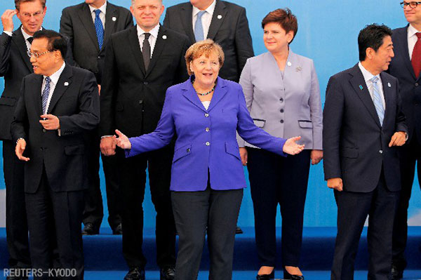 | 在亞歐會議(ASEM)首腦會議上攝影的各國領導人(烏蘭巴托15日、REUTERS-KYODO) |