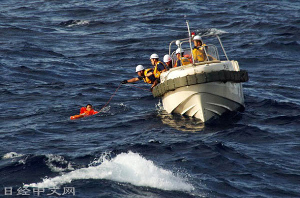 | 圖為日本海上保安廳的小型船在搭救中國漁船的船員(日本第11管區海上保安本部提供) |