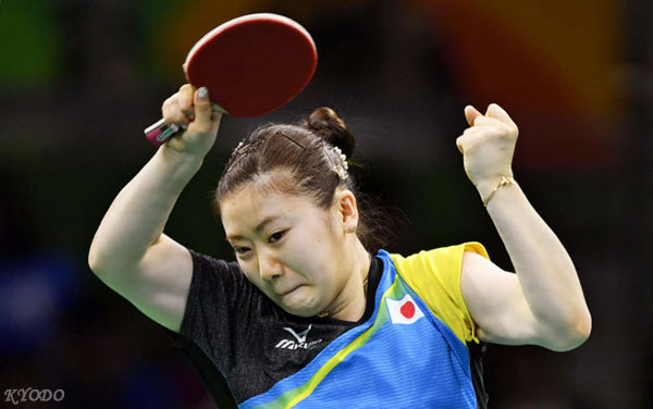 | 福原愛與德國隊韓瑩對陣時(kyodo) |