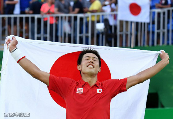 | 奪得網球男單銅牌的日本選手錦織圭 |
