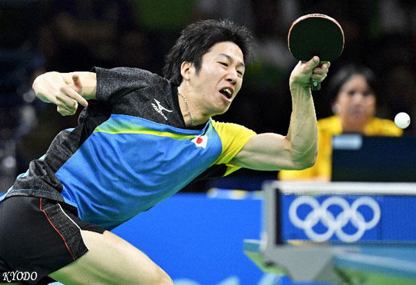 | 男兵團體決賽第2場比賽,單打銅牌得主水谷隼3-2戰勝世界排名第三的許昕(17日,里約,kyodo) |