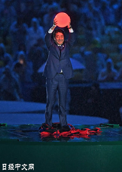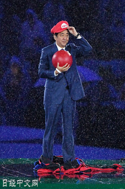 | 扮演超級瑪麗登場的日本首相安倍晉三(21日,里約) |