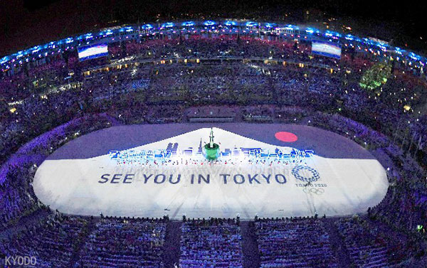 | 里約閉幕式上出現以富士山等為背景的「相約東京」投影(21日,里約,kyodo) |