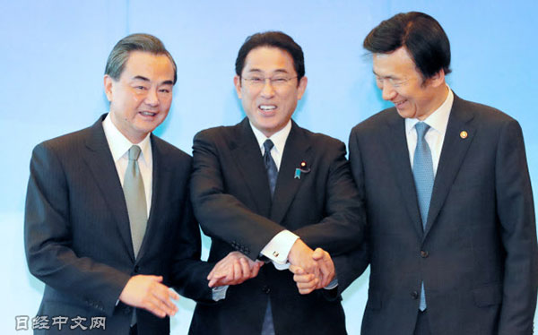 中國、日本與南韓3國外長8月24日上午在日本外務省的飯倉公館舉行會談,就為年內舉行3國首腦會談展開合作的方針達成共識。關於朝鮮的核和導彈開發,確認了要求各國遵守聯合國安理會制裁決議的想法。由於朝鮮24日上午向日本海發射一枚潛射彈道導彈(SLBM),3方再次就加強彼此間合作達成共識。