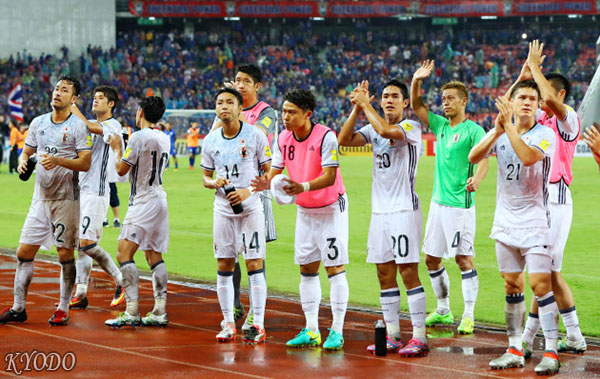 | 戰勝泰國隊後,日本隊員回應球迷歡呼(曼谷,KYODO) |