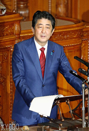 | 日本參議院9月29日舉行的全體會議上進行答辯的日本首相安倍晉三 |