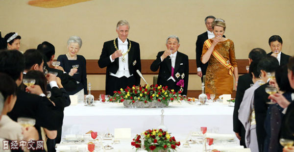 | 天皇夫婦與比利時國王、王后乾杯 (10月11日,皇居) |