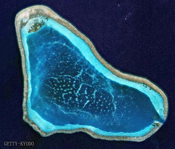 | 黃岩島的衛星圖片(GETTY-KYODO) |