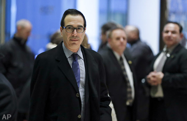 | 史蒂芬·姆欽(21日,紐約熱朗普大樓) |
