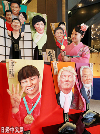 代表今年「話題人物」的年底例行的「特色毽球板」11個作品12月7日在位於東京淺草橋的人偶企業「久月」總部公開。入選的有奪得奧運會四連冠、榮獲日本國民榮譽獎的摔跤選手伊調馨(32歲)、獲得諾貝爾生理學或醫學獎的東京工業大學榮譽教授大隅良典(71歲)等19人。