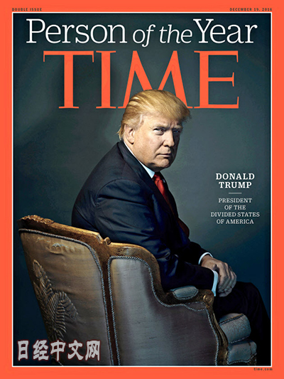 美國《時代(TIME)》週刊12月7日將美國侯任總統川普評選為2016年年度人物。