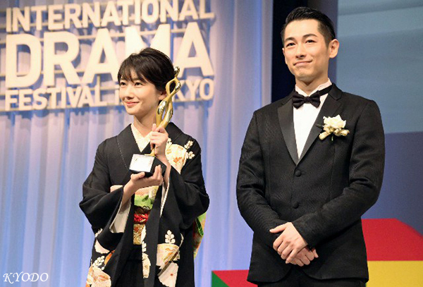| 《阿淺來了》主演波瑠(左)和藤岡靛(DEAN FUJIOKA,右)在出席活動 (12月7日下午,東京六本木,KYODO) |