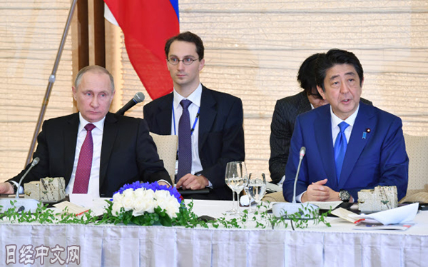 安倍就經濟合作項目説:「能帶來日俄雙方獲得巨大的利益,無疑有利於釀成信賴關係。這是至今日俄關係上沒有前例的事情」。