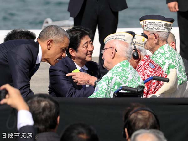 | 安倍與歐巴馬在珍珠港與美國原軍人交談 12月27日美國夏威夷 |