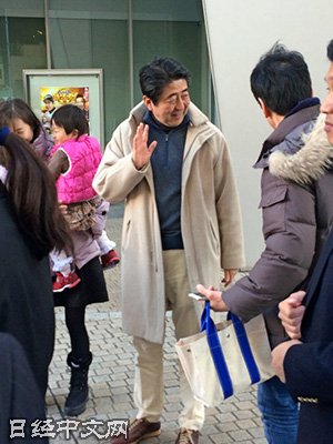 | 在六本木新城與行人拍照的安倍(1月3日,東京) |