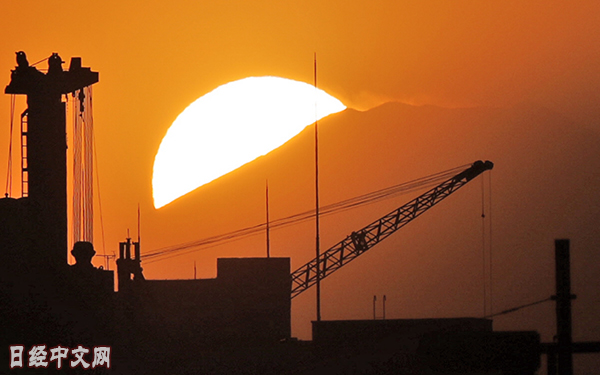 | 夕陽緩緩沉入富士山的「鑽石富士」奇景(2月3日,東京) |