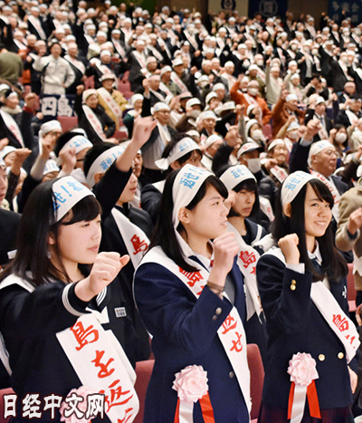 | 在「北方領土日」參加「根室轄區居民大會」的當地中學生(2月7日,北海道根室市) |