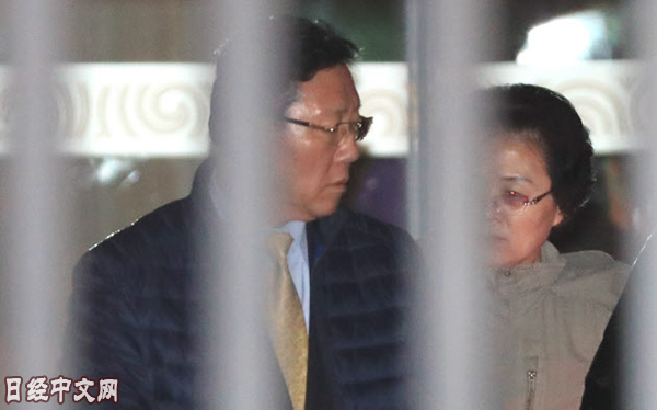| 姜哲(左)到達北京國際機場(3月7日淩晨,小高顯攝) |