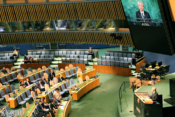 高見澤裁軍大使在27日的演説中指出,「如果核武器保有國不參加,將進一步加深保有國與非保有國的裂痕、國際社會的分裂,將使無核武器世界更加遙遠」。在此基礎上表示,「不認為有助於朝鮮威脅等現實安全保障問題的解決」,認為需要追求包括核保有國在內的「現實且有效的措施」,對條約顯示出否定看法。
