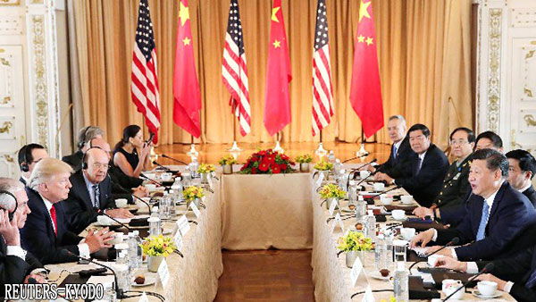 | 會談中的川普與習近平(7日,佛羅里達州棕櫚灘,Reuters-kyodo) |