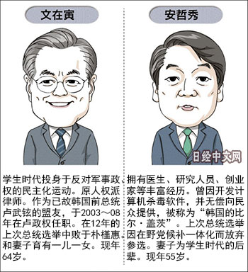 因前總統朴槿惠與好友崔順實的干政事件,在南韓總統大選中保守政黨失去了國民的支援,傳統的保革兩派勢力對決的局面瓦解。此前,文在寅在改革層的堅定支援下遙遙領先,而現在被獲得保守層支援的中間派候選人安哲秀猛追不捨,二人展開了激烈爭奪。