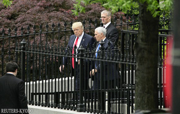 | 川普(左)向眾參議員説明了朝鮮對策(美國時間4月26日,華盛頓,Reuters-Kyodo) |
