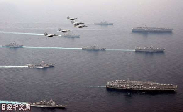 日本自衛隊與美國兩艘航母實施聯合訓練