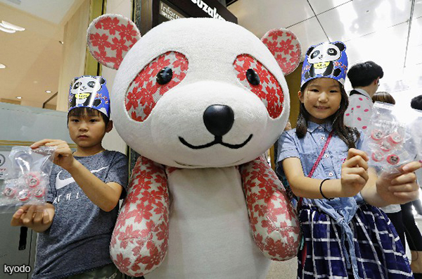 | 上野動物園熊貓産子後,百貨商場松坂屋上野店在店舖內派發熊貓的金太郎糖果(kyodo) |