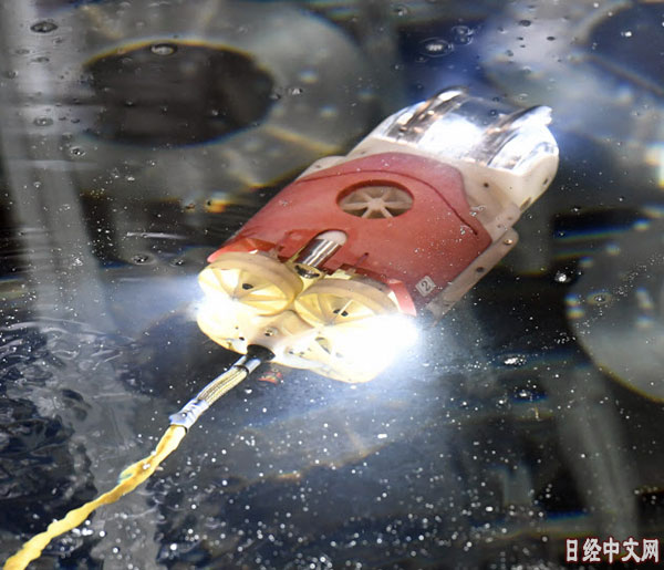 6月15日,東芝和國際反應爐報廢研究開發機構(IRID)發佈了用於調查東京電力福島第一核電站3號機組反應爐安全殼內部情況的水下機器人。機器人將從安全殼的側面投入,利用前後方配備的攝像頭拍攝內部情況。疑似大量燃料熔落的3號機組的內部狀況尚未被掌握,根據拍攝的影像,有助於制定熔融燃料的回收計劃。