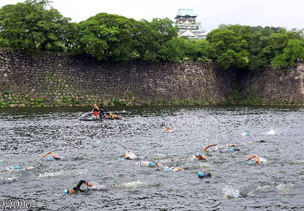 6月25日,日本大阪市舉辦了一場頗具新意的鐵人三項賽。該次比賽以大阪的代表性歷史建築物大阪城所在的大阪城公園為主會場,游泳比賽則選擇在大阪城的護城河裏舉行。據該公園的指定管理者及賽事主辦方介紹,這是首次在大阪城的護城河裏舉辦的體育賽事,也是日本國內首次選擇在護城河裏舉辦鐵人三項賽。