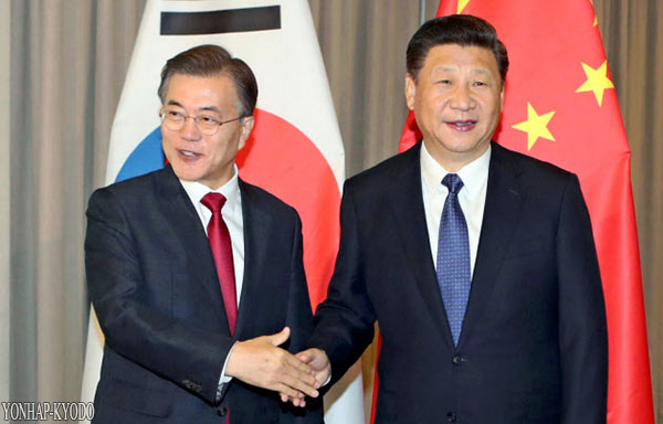 另一方面,習近平就南韓部署薩德一事表示:「希望韓方重視中方正當關切,妥善處理有關問題,為中韓關係改善和發展掃除障礙」,再次要求南韓撤銷部署薩德系統。中國對南韓企業的在華業務以及文化人文領域的交流採取了報復措施。文在寅要求習近平在重新加強不斷縮小的中韓交流活動方面進行協助。