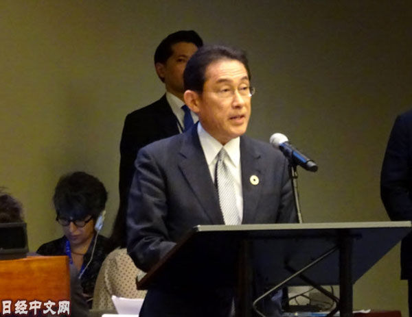| 在聯合國總部發表演講的日本外相岸田文雄(7月17日,紐約) |