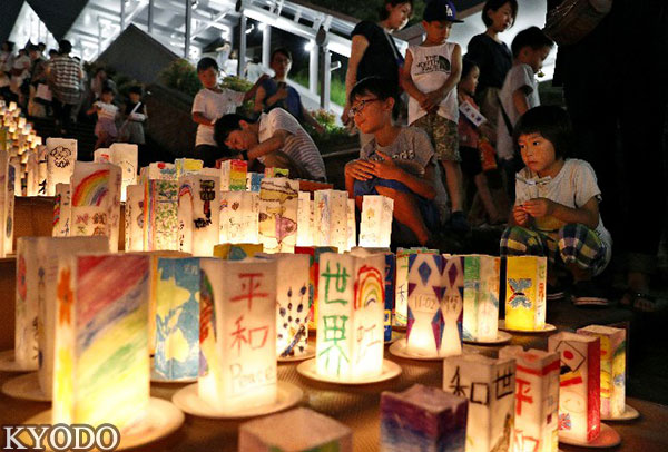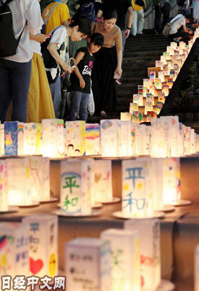 | 長崎市的和平公園點亮的「和平之燈」(8月8日晚,長崎,kyodo) |
