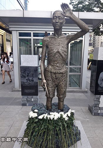 | 龜山車站前的「強徵勞工像」(8月12日,首爾) |