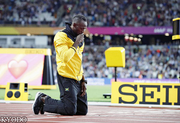 在長年獨霸的100米和200米賽道終點線前,波爾特胸前劃十,做出了他標誌性的拉弓動作。儘管在本屆世錦賽上他最終以一枚銅牌和一場未完成的比賽悲壯地告別了賽場,但波爾特充滿自信地説:「我證明了只要不斷努力任何事都可能成功。這是為年輕人留下的遺産。這屆世錦賽和最後的戰敗不能改變我迄今取得的成績」。