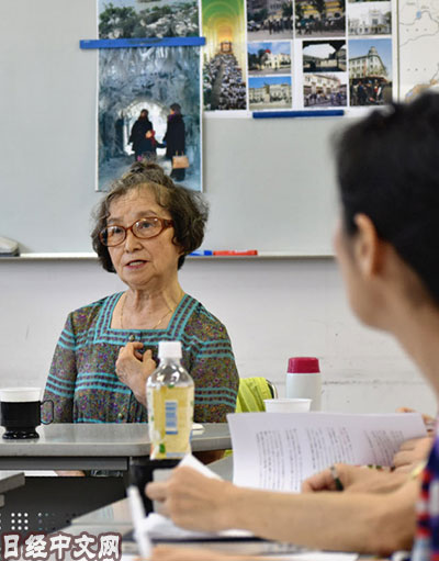 | 中國遺留孤兒桂康惠將戰後的苦難講述給傳承者的研修生(7月23日,東京都台東區) |