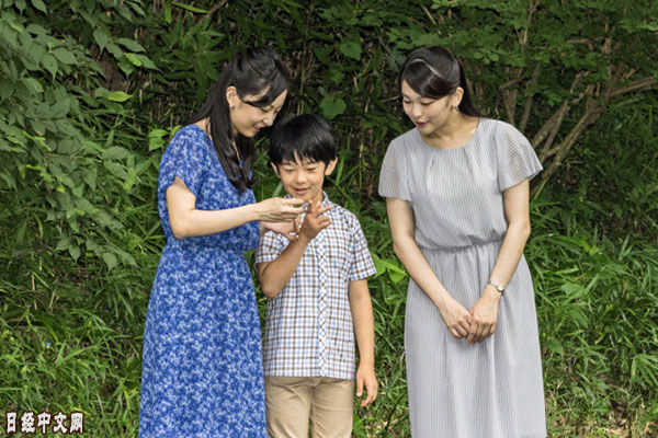 | 在赤坂御用地內散步的悠仁親王、真子公主和佳子公主(8月14日,東京元赤坂,照片由宮內廳提供) |